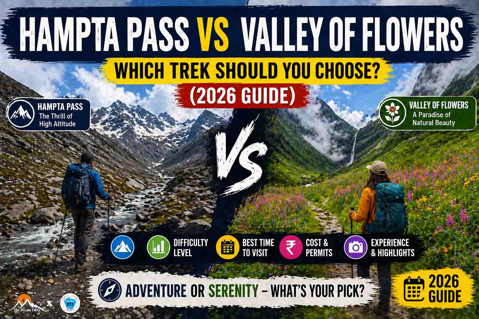 Hampta Pass vs Valley of Flowers – Which Trek Should You Choose? (2026 Guide)