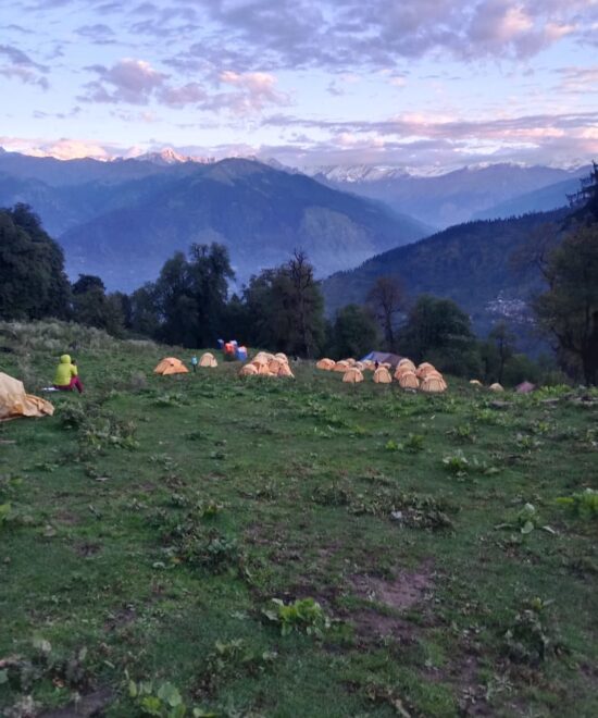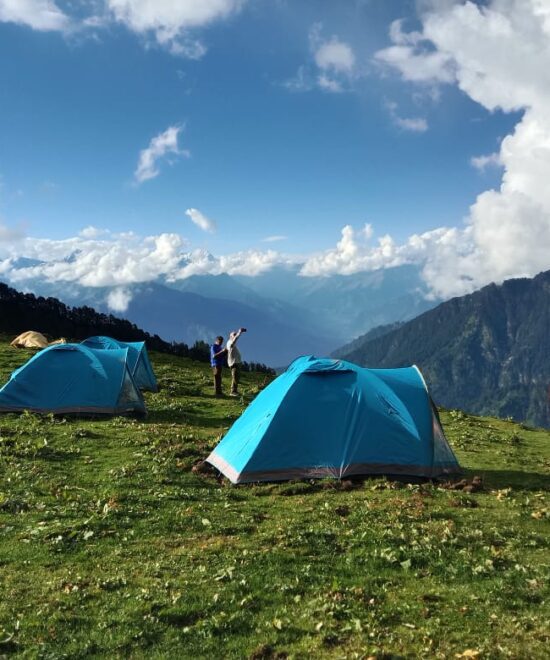 After an early morning breakfast at Naya Thapru, you will begin your trek towards Dadru via Chandrakhani Pass. Today’s trail is the highlight of the trek, as you ascend gradually through alpine meadows and oak–deodar forests, making your way to the Chandrakhani Pass at 12,008 ft. From the top, soak in breathtaking panoramic views of the Pir Panjal, Dhauladhar, and Parvati ranges — a truly unforgettable sight. After spending some time at the pass, you will descend through scenic trails leading to the Dadru Campsite. Upon arrival, enjoy evening snacks followed by dinner, and wind down under a starlit sky. Overnight stay in camps.
