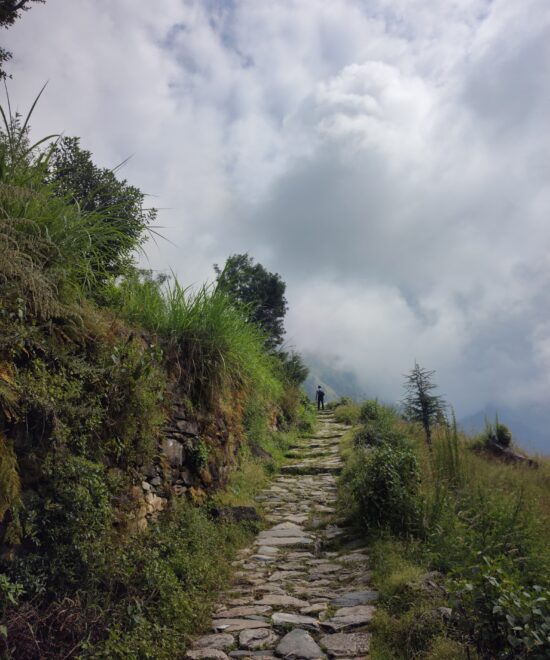 The trek can be done year-round, but the best times are March to May (for spring views), September to November (for clear skies), and December to February (for snow trekking).