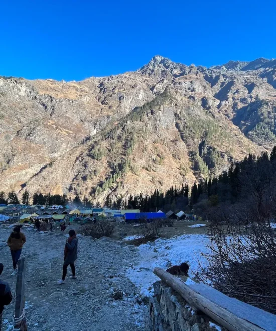 You’ll stay in camps at Kheerganga, with basic bedding and food facilities.