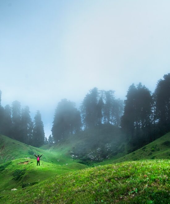 The trek offers dense Deodar forests, Budher Caves (believed to be built by the Pandavas), expansive alpine meadows, and breathtaking views of the Himalayan ranges.